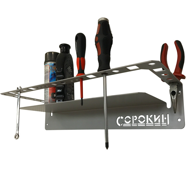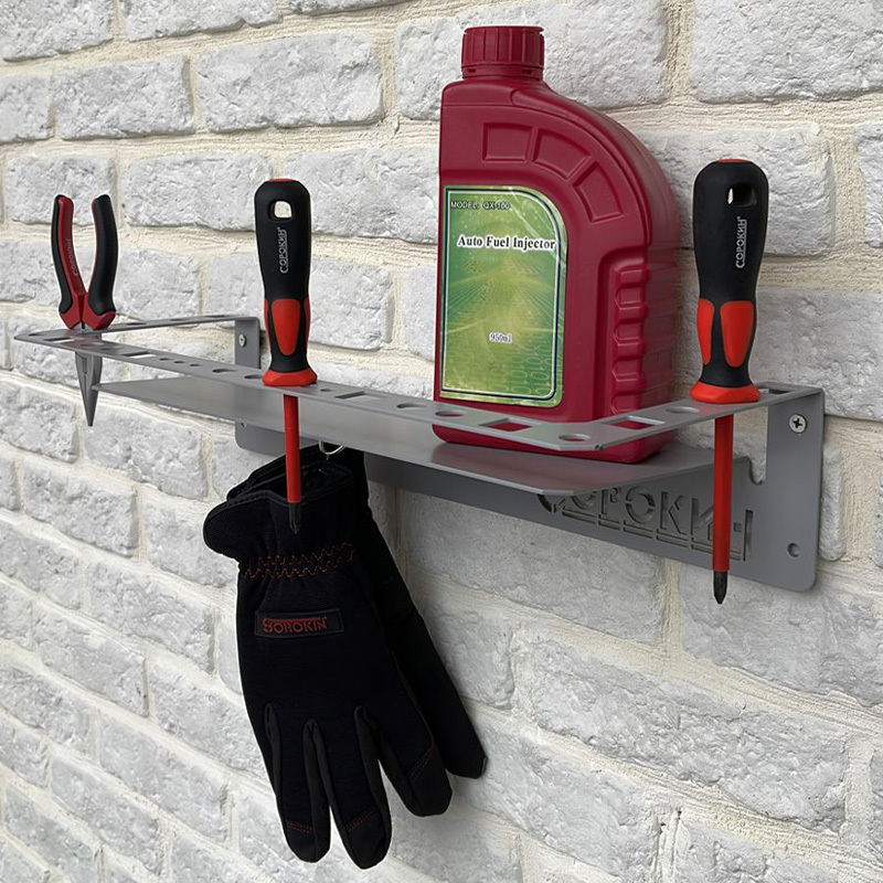 Полка настенная предназначена для удобного размещения и хранения инструмента, тары, расходных материалов.Ограничительная планка полки надёжно защищает от падения любые размещённые на ней предметы. В целях максимально полезного использования пространства, планка имеет отверстия для хранения отвёрток, напильников, пассатижей и т.д.Полка изготовлена из стали, что даёт возможность использовать её вместе с магнитными контейнерами.Полка крепится как на стену, так и на перфорацию.Порошковая окраска металла надёжно защищает изделие от коррозии.
