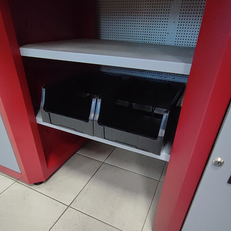 Лоток изготовлен из прочного полипропилена и предназначен для хранения метизов, деталей, комплектующих, запчастей, и прочих мелких изделий. В передней части лотка предусмотрен отсек для бирки, на которой можно указать наименование содержимого. Возможно штабелирование до нескольких единиц в высоту, в зависимости от нагрузки на единицу. Температура эксплуатации от -20 до +45°С, температура мойки до +95°С. Возможность применения с инструментальной мебелью и стеллажами .