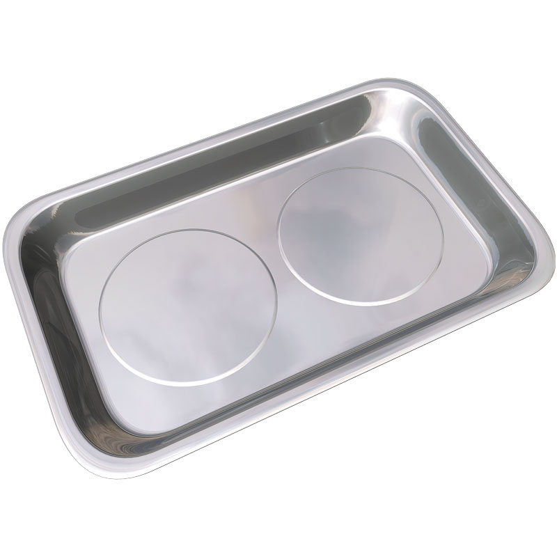 Магнитный лоток предназначен для хранения крепежа и инструмента, удобен при разборке и сборке механических агрегатов с множеством крепёжных и мелких металлических деталей. Изготовлен из нержавеющей стали, с двумя магнитами толщиной 0,85cм. Размер лотка: 240х140мм