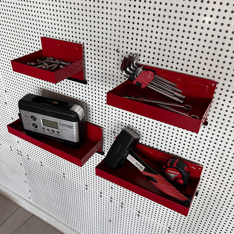 Магнитная полка предназначена для размещения и хранения небольших предметов - деталей, инструмента, метизов и т.д. Крепится на любой металлической поверхности. Благодаря обрезиненным магнитам надежно держится на поверхности не царапая её. Изготовлена из листовой стали, окрашена порошковой эмалью.