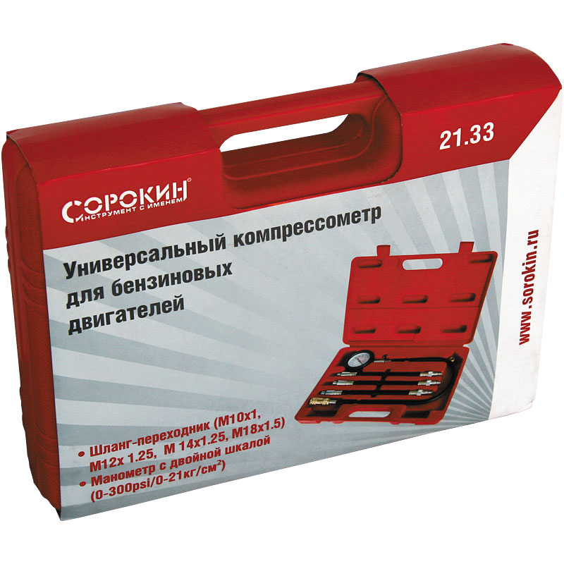 Компрессометр предназначен для измерения и контроля компрессии в цилиндрах автомобильных бензиновых или инжекторных двигателей внутреннего сгорания. Измерение может быть произведено, как в бытовых условиях, так и на станциях техобслуживания.