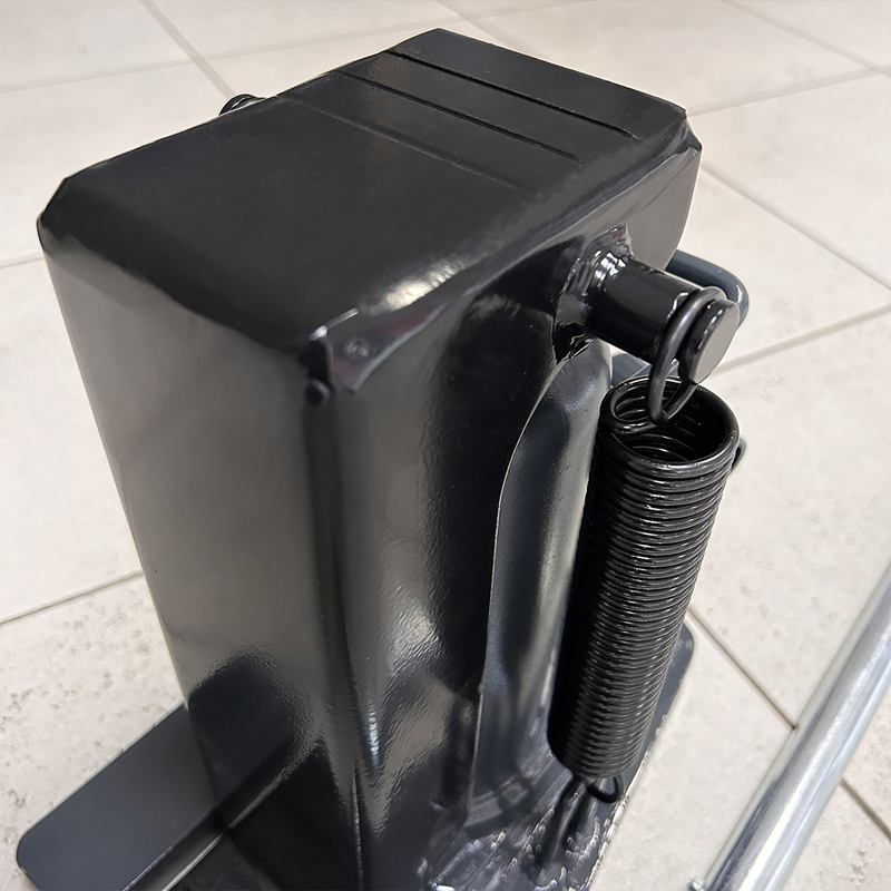 Конструктивной особенностью данного подъёмного приспособления является захват груза практически от уровня пола. Домкрат нашёл своё применение в области монтажа станков и оборудования, имеющих минимальный просвет от нулевой отметки.