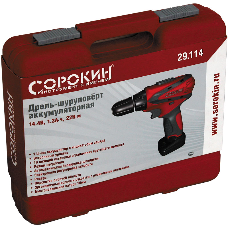Аккумуляторная дрель-шуруповерт предназначена для сверления отверстий в различных материалах средней твердости (дерево, пластик, металл, плитка), а так же для закручивания шурупов, винтов и гаек при использовании соответствующих бит и насадок. Li-ion аккумулятор с индикатором заряда "SAMSUNG" Электродвигатель "Mabuchi" Быстрозажимной патрон 10мм Двухскоростной механический редуктор 18 позиций установки ограничения крутящего момента Режим сверления Электронная регулировка скорости Реверс Подсветка рабочей области Эргономический корпус и рукоятка с резиновыми вставками Комплект поставки: Дрель-шуруповерт 1шт. Li-ion аккумулятор 1шт. Зарядное устройство 1шт. Пластиковый кейс 1шт. Паспорт 1шт.