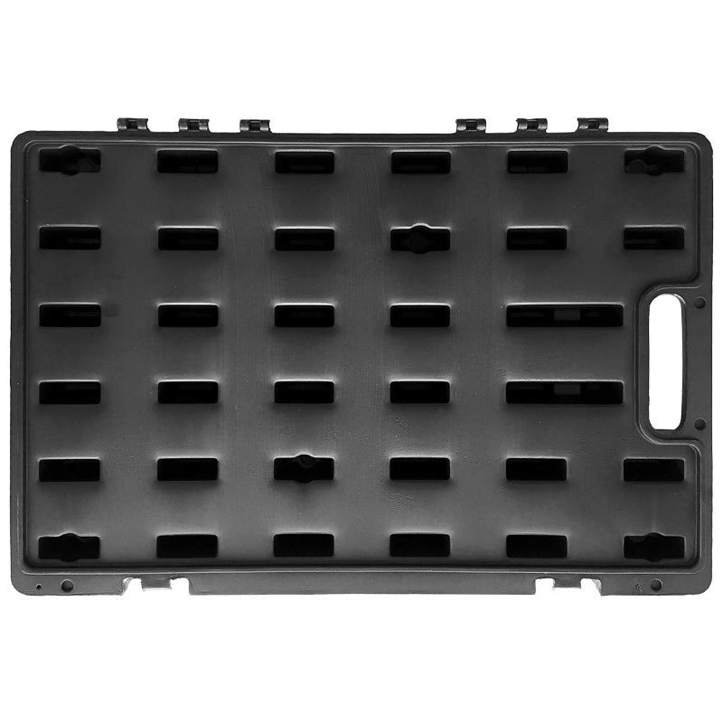 Крышка для модульных наборов профессиональной серии «Break». Вы можете скомплектовать свой набор как двумя половинками с инструментом так и укомплектовать одну половинку пустой крышкой. Крышка также пригодится для транспортировки инструмента в случае, если Вам необходимо взять с собой одну половинку с инструментом.Одно из главных преимуществ модульных наборов «Break» - использование их в качестве ложемента для инструментальных шкафов серий Standart и Great Помимо вышеперечисленных моделей шкафов, наборы могут использоваться с инструментальной тележкой, а также со всеми моделями верстаков и столов.Составив необходимую конфигурацию из любой нижней и верхней части, Вы получаете полноценный мобильный кейс с инструментом.