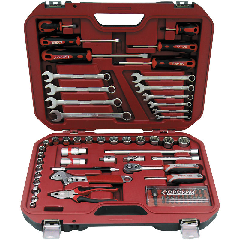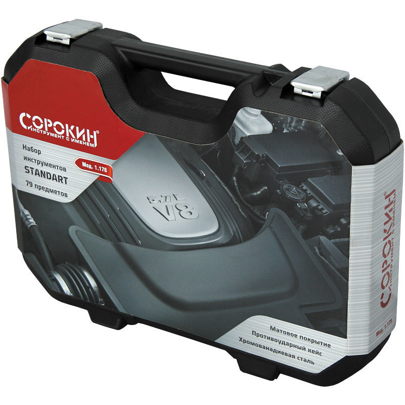 Наборы Standart - это наборы инструмента различного вида и назначения в компактном кейсе. Вы никогда не столкнетесь с проблемой поиска нужного инструмента! Каждый элемент на своем месте с обозначением вида и размера. Весь инструмент выполнен из хромованадиевой стали с матовым хромовым покрытием, что гарантирует высокую прочность, износоустойчивость и долговечность. Комплектация: 3/8" Головки SUPER LOCK 6-7-8-9-10-11-12-13-14-15-16-17-18-19-20-21-22-24 мм 18 3/8" Головки свечные SUPER LOCK 16-21 мм 2 3/8" Ключ трещоточный 72 "зубца" 1 3/8" Удлинители 125-250 мм 2 3/8" Карданный шарнир 1 3/8" Адаптер 3/8"(F) x 1/4"(M) 1 3/8" Адаптер 1/2"(F) x 3/8"(M) 1 1/4" Адаптер 1/4"(F) x 3/8"(M) 1 1/4" Держатель для бит 1 1/4" Адаптер 1 Ключи комбинированные 6-7-8-10-12-13-14-15-17-19 мм 10 Пассатижи 7" 1 Ключ разводной 8" 1 Шлицевые: 6.5х38, 5.5х100, 8х150 мм 3 Крестовые: 1х75, 2х38, 2х100 мм 3 Захват магнитный телескопический 1 Набор бит 1/4" 31 предмет: PH: 0-1-2-3-4 5 PZ: 0-1-2-3-4 5 TX: T10-T15-T20-T25-T27-T30 6 Шестигранные: 1.5-2-2.5-3-4-5-6 мм 7 Шлицевые: 3-4-4.5-5-5.5-6-7 7 Адаптер 1