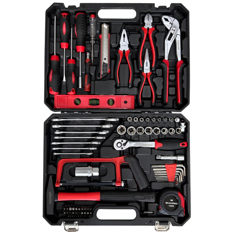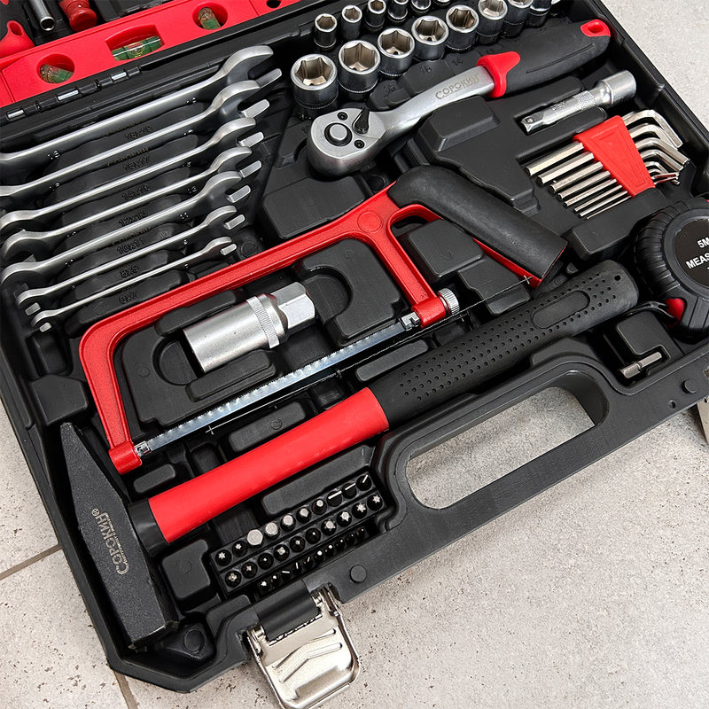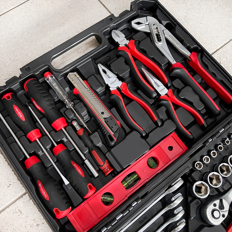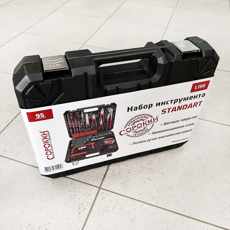 Наборы Standart - это наборы инструмента различного вида и назначения в компактном кейсе. Вы никогда не столкнетесь с проблемой поиска нужного инструмента! Каждый элемент на своем месте с обозначением вида и размера. Весь инструмент выполнен из хромованадиевой стали с матовым хромовым покрытием, что гарантирует высокую прочность, износоустойчивость и долговечность. 1/4" Головки шестигранные 4-4.5-5-5.5-6-7-8-9 мм 8 1/4" Адаптер для отвёртки под головку шестигранный 1 1/4" Отвёртка-держатель для бит 1 1/4" Прецизионная отвёртка-держатель для бит 1 Отвёртка-тестер 1 Отвёртки: PH1х100мм, PH2х125мм 2 SL5.5х100мм 1 3/8" Головки шестигранные 10-11-12-13-14-15-16-17-18 мм 9 3/8" Головка свечная 21 мм 1 3/8" Ключ трещоточный 72 "зубца" 1 3/8" Удлинитель 75 мм 1 Адаптер 3/8"(F) x 1/4"(M) 1 Ключи комбинированные 6х7-8х9-10х11-12х13-14х15-16х17-18х19 мм 7 Клещи переставные 250 мм 1 Набор шестигранников 1.5-2-2.5-3-4-5-5.5-6 8 Пассатижи 6" 1 Тонкогубцы 6" 1 Бокорезы 6" 1 Уровень 9" 1 Концелярский нож 1 Лезвия для ножа 10 Пила 150мм 1 Полотно для пилы 3 Рулетка 5м 1 Молоток слесарный 300 г 1 Набор бит 20 предметов: PH: 1-2-3 3 PZ: 1-2-3 3 TX: T10-T15-T20-T25-T27-T30 6 HEX: H3-H4-H5-H6-H7 5 Шлицевые: SL4-5.5-6.5 мм 3 Набор бит для прецизионной отвертки 10 предметов: PH000-PH00-PH0 3 TX: T6-T8 2 HEX: H1/16-H5/64 2 Шлицевые: 5/64-3/32-1/8 3 Кейс 1 "Пожизненная гарантия" распространяется на торцевые головки, рожковые и рожково-накидные ключи. Ограниченная гарантия сроком на 12 месяцев с даты приобретения предоставляется на инструмент, имеющий храповый механизм. Гарантия не распространяется на следующий инструмент: Биты, Головки-биты, Гибкие удлинители, Адаптеры, Уменьшающие переходники, Ударный инструмент, Режущий инструмент, Инструмент облегченной конструкции.