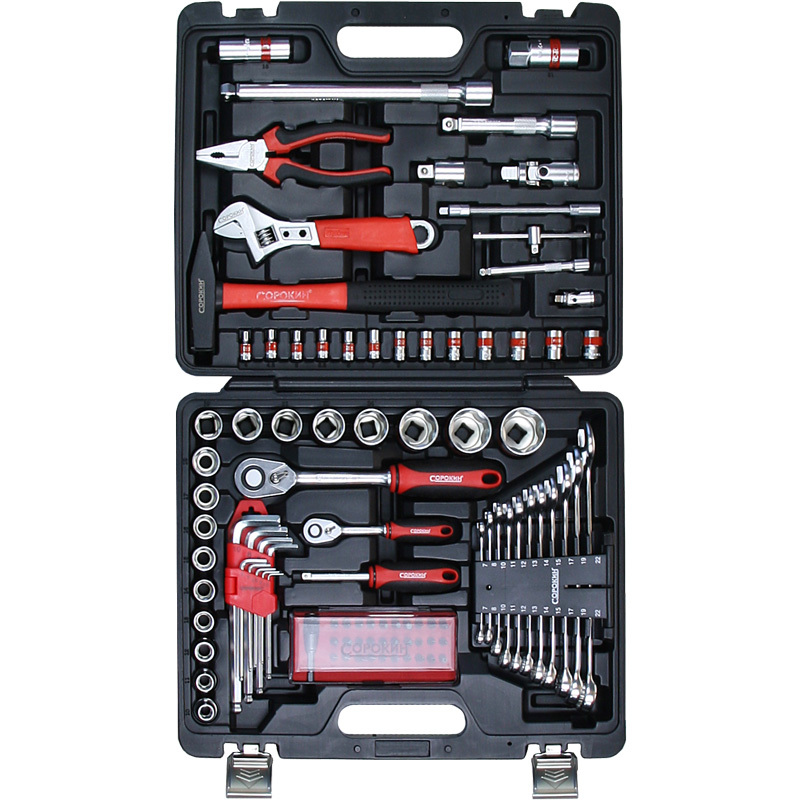 Наборы Standart - это наборы инструмента различного вида и назначения в компактном кейсе. Вы никогда не столкнетесь с проблемой поиска нужного инструмента! Каждый элемент на своем месте с обозначением вида и размера. Весь инструмент выполнен из хромованадиевой стали с матовым хромовым покрытием, что гарантирует высокую прочность, износоустойчивость и долговечность. 1/4" Головки SUPER LOCK 4-4.5-5-5.5-6-7-8-9-10-11-12-13-14 мм 13 1/4" Ключ трещоточный 72 "зубца" 1 1/4" Удлинитель 100 мм 1 1/4" Держатель для бит 1 1/4" Карданный шарнир 1 1/4" Вороток Т-образный 110 мм 1 1/4" Гибкий удлинитель 1 1/2" Головки SUPER LOCK 10-11-12-13-14-15-16-17-18-19-20-21-22-24-27-30-32 мм 17 1/2" Головки свечные SUPER LOCK 16-21 мм 2 1/2" Ключ трещоточный 72 "зубца" 1 1/2" Удлинители 125-250 мм 2 1/2" Карданный шарнир 1 1/2" Адаптер 3/8"(F) x 1/2"(M) 1 Ключи комбинированные 7-8-10-11-12-13-14-15-17-19-22 11 Ключ разводной 8" 1 Набор шестигранников 1.5-2-2.5-3-4-5-6-8-10 9 Пассатижи 7" 1 Молоток слесарный 300 г 1 Набор бит 31 предмет: PH: 0-1-2-3-4 5 PZ: 0-1-2-3-4 5 TX: T10-T15-T20-T25-T27-T30 6 Шестигранные: 1.5-2-2.5-3-4-5-6 мм 7 Шлицевые: 3-4-4.5-5-5.5-6-7 мм 7 Адаптер 1