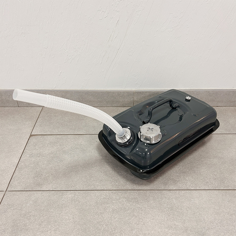 Канистра предназначена для хранения и транспортировки ГСМ, бензина и других видов топлива. Изделие комплектуется надежной резьбовой крышкой, благодаря которой при хранении и транспортировке исключено протекание и испарение. Так же в конструкции предусмотрен клапан избыточного давления. Для удобства канистра оснащена гофрированной заливной пластиковой трубкой. Горизонтальное распределение центра тяжести позволяет перевозить канистру в багажнике автомобиля без риска опрокидывания. Ёмкость изготовлена из листовой стали с гальваническим покрытием изнутри и снаружи, что полностью исключает возможность образования коррозии.