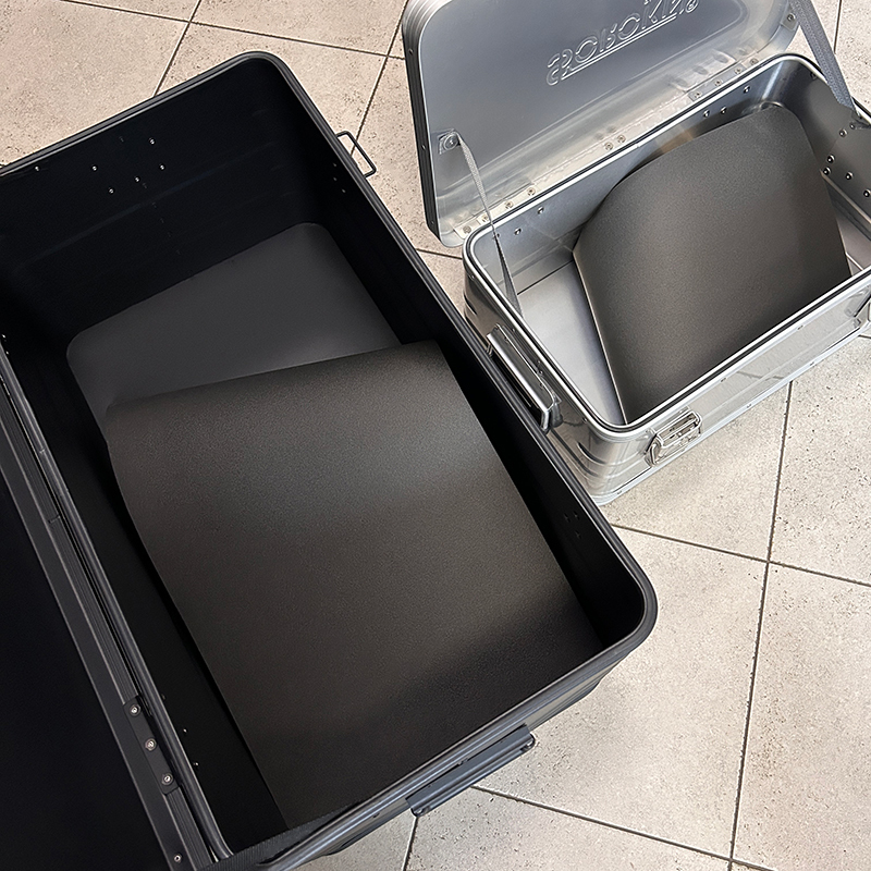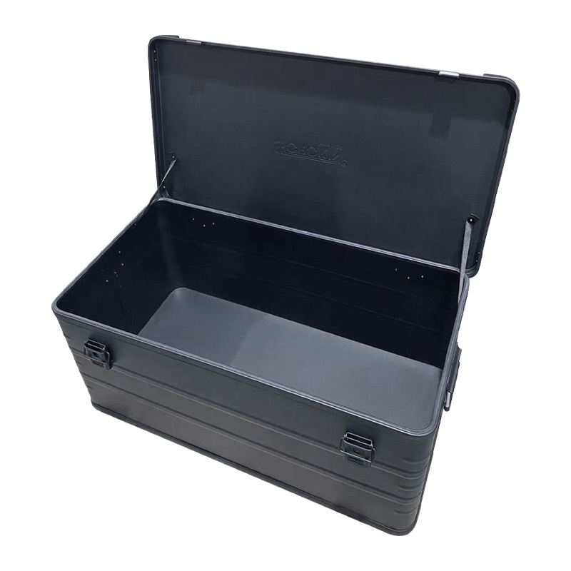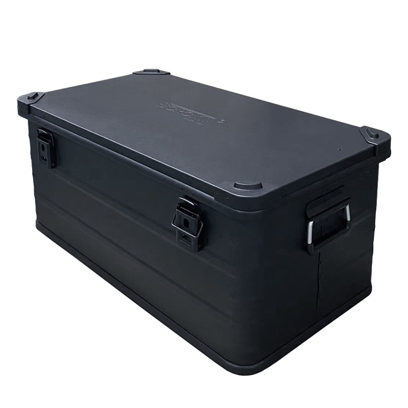Ящик алюминиевый – новое поколение контейнеров для защиты ценных предметов от механических повреждений, влаги и пыли.Универсальный в эксплуатации ящик широко используется на водном и в автомобильном транспорте для перевозки ценных грузов, так как, благодаря своей форме, способен оставаться статичным во время качки, что делает его отличной альтернативой пластиковым ящикам и алюминиевым кейсам. Очевидным плюсом данного ящика является наличие усиленной крышки с алюминиевыми уголками для установки изделий в колонну, и корпуса с дополнительными прокатками в качестве ребер жесткости на каждой из граней ящика. Усовершенствованная технология сварки, применяемая при производстве данных сундуков не только делает внешние и внутренние швы визуально неприметными, но и обеспечивает показатели пыле- и влагозащитным кейса соответствующие классу IP 54. Ящик устойчив к ультрафиолетовому излучению, коррозии и агрессивным веществам.Вышеупомянутых особенностей конструкции и материала уже достаточно для приобретения данного ящика, но мы отдельно хотим выделить наличие приятных для пользователей деталей. Покрытие кейса из черного жидкого пластика предотвращает появление царапин на его поверхности, что сохраняет изделие в первозданном виде намного дольше чем базовые алюминиевые ящики без окрашивания. Ящик обладает подпружиненными усиленными ручками-скобами, а его крышка прикреплена к основанию широкими и прочными металлическими петлями. Ограничителем полного открытия крышки выступают стопорные ремни на прочных металлических заклёпках.Ящик может быть дополнительно укомплектован поролоновым вкладышем и ППЭ-ковриком необходимого размера и конфигурации для более безопасной транспортировки ручного и электроинструмента, а также дорогостоящей аппаратуры и других ценных вещей.