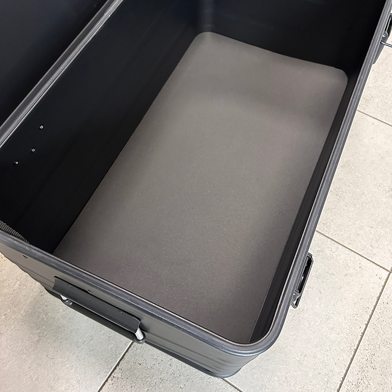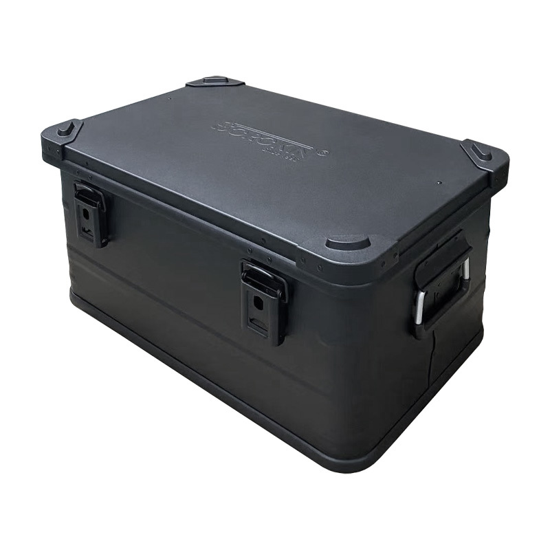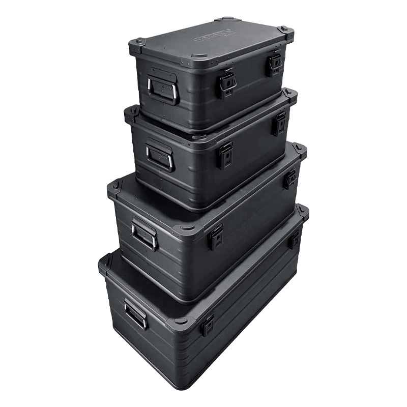 Ящик алюминиевый – новое поколение контейнеров для защиты ценных предметов от механических повреждений, влаги и пыли.Универсальный в эксплуатации ящик широко используется на водном и в автомобильном транспорте для перевозки ценных грузов, так как, благодаря своей форме, способен оставаться статичным во время качки, что делает его отличной альтернативой пластиковым ящикам и алюминиевым кейсам. Очевидным плюсом данного ящика является наличие усиленной крышки с алюминиевыми уголками для установки изделий в колонну, и корпуса с дополнительными прокатками в качестве ребер жесткости на каждой из граней ящика. Усовершенствованная технология сварки, применяемая при производстве данных сундуков не только делает внешние и внутренние швы визуально неприметными, но и обеспечивает показатели пыле- и влагозащитным кейса соответствующие классу IP 54. Ящик устойчив к ультрафиолетовому излучению, коррозии и агрессивным веществам.Вышеупомянутых особенностей конструкции и материала уже достаточно для приобретения данного ящика, но мы отдельно хотим выделить наличие приятных для пользователей деталей. Покрытие кейса из черного жидкого пластика предотвращает появление царапин на его поверхности, что сохраняет изделие в первозданном виде намного дольше чем базовые алюминиевые ящики без окрашивания. Ящик обладает подпружиненными усиленными ручками-скобами, а его крышка прикреплена к основанию широкими и прочными металлическими петлями. Ограничителем полного открытия крышки выступают стопорные ремни на прочных металлических заклёпках.Ящик может быть дополнительно укомплектован поролоновым вкладышем и ППЭ-ковриком необходимого размера и конфигурации для более безопасной транспортировки ручного и электроинструмента, а также дорогостоящей аппаратуры и других ценных вещей.