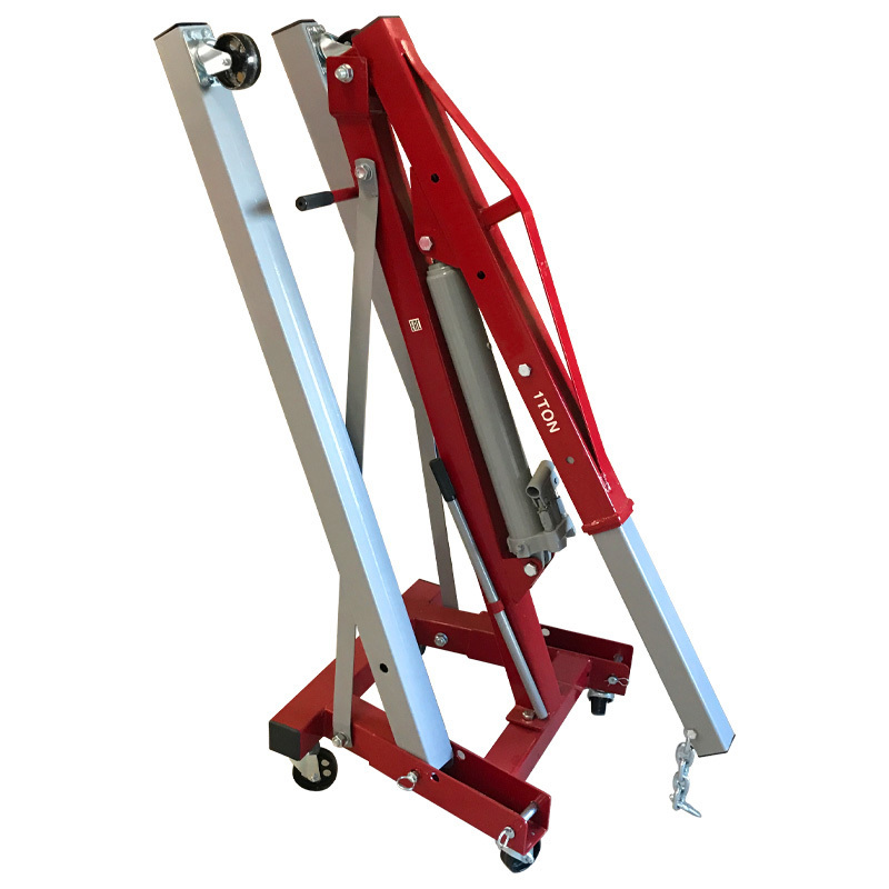 Кран гидравлический представляет собой мобильное устройство, предназначенное для подъема грузов. Применяется главным образом на станциях технического обслуживания для монтажа-демонтажа автомобильных двигателей. Для удобства работы используйте траверсы . Стрела крана имеет усилитель в виде металлической пластины, обваренной по периметру профиля. Кран комплектуется гидравлическим цилиндром, оснащенным механизмом с ускоренным подъёмом за счет работы двух плунжеров. Устройство полностью автономно, не требует ни электричества, ни верхних опор (балок, перекрытий и т.п.)