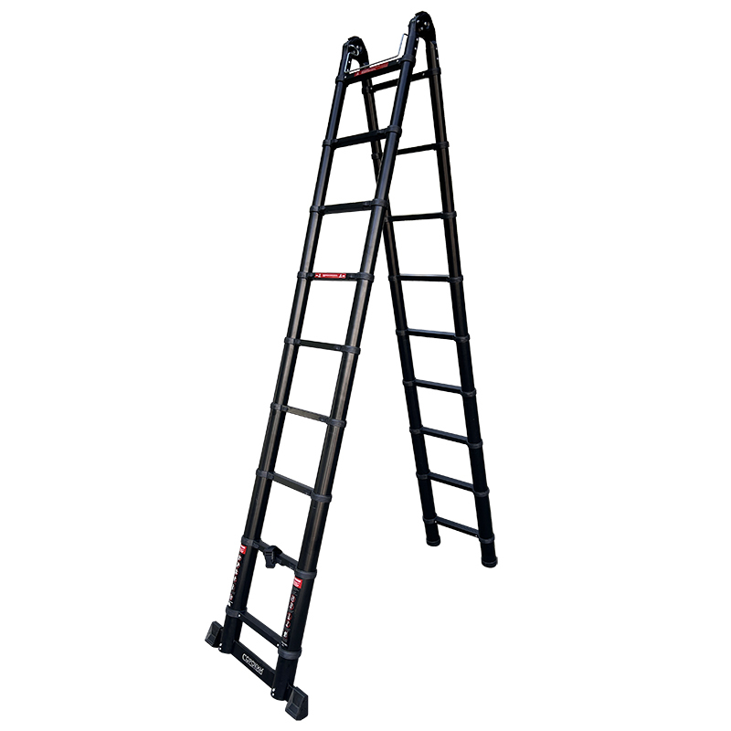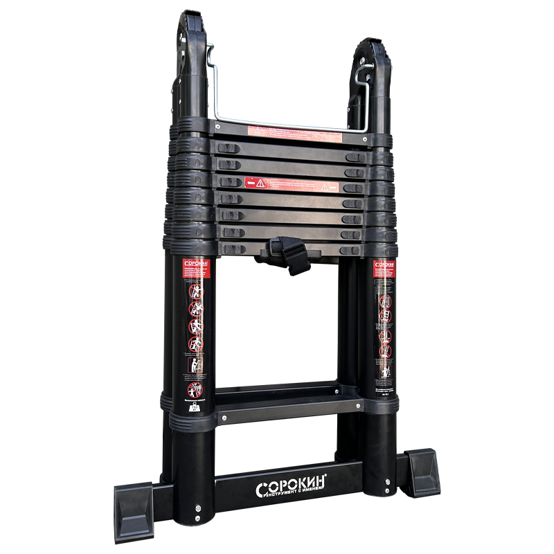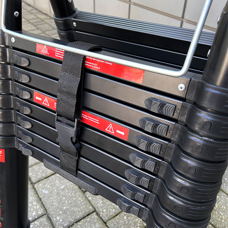 Телескопическая алюминиевая шарнирная лестница – компактная и надежная.Лестница универсальна: может применяться как двусторонняя стремянка и как приставная лестница.Ее основное преимущество– выдвижная конструкция, которая в сложенном состоянии компактна и не требует много места при хранении (поместиться в шкаф, на балкон, под кровать) и при перевозке (умещается в легковой автомобиль).При небольшом весе, из-за облегченного алюминиевого каркаса, лестница способна выдерживать нагрузку до 150 кг.Соединительные механизмы обеспечивают простоту обращения, а надежные материалы – длительную эксплуатацию.Чтобы ее разложить, достаточно потянуть за верхнюю ступень вверх. Характерный щелчок означает, что уровень зафиксирован, можно вытягивать следующий.Так же быстро она и разбирается.Благодаря телескопическому выдвижению секций от перекладины к перекладине возможно применение на лестницах, уступах, неровных поверхностях без дополнительных принадлежностей. Противоскользящие двухкомпонентные опорные заглушки препятствуют скольжению по гладкому полу.Секции телескопической лестницы состоят из опорных труб и перекладин – в зависимости от необходимости, высота лестницы может быть изменена.ВАЖНО!Перед использованием обязательно проверьте правильность установки лестницы! Соблюдайте угол наклона к стене (65-75°) и обязательно используйте страховочные пояса и другие страховочные приспособления!!!ВНИМАНИЕ!На каждой ступени имеются пластиковые фиксаторы. Лестница пригодна для использования только тогда, когда все фиксаторы встанут на свои места и защелкнутся.Шарниры должны быть заблокированы перед использованием лестницы!Фиксированное положение шарнира - 30, 105 и 180 градусов!Механизмы блокировки издают характерный щелчок при использовании, но, несмотря на это, ВСЕГДА визуально проверяйте, что рычаги заблокированы.