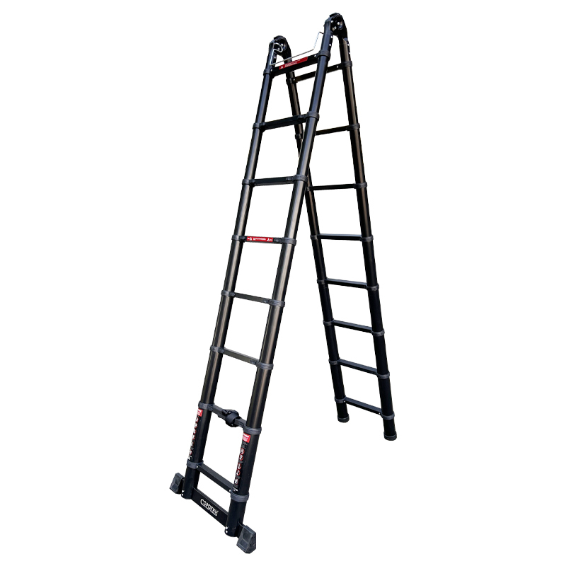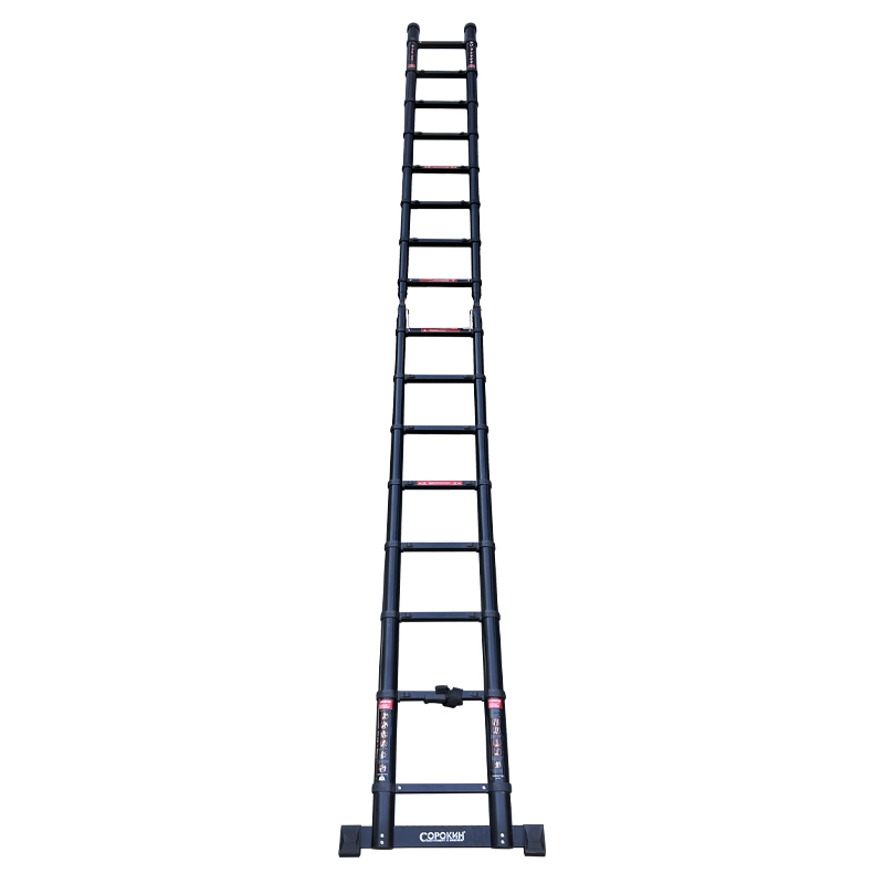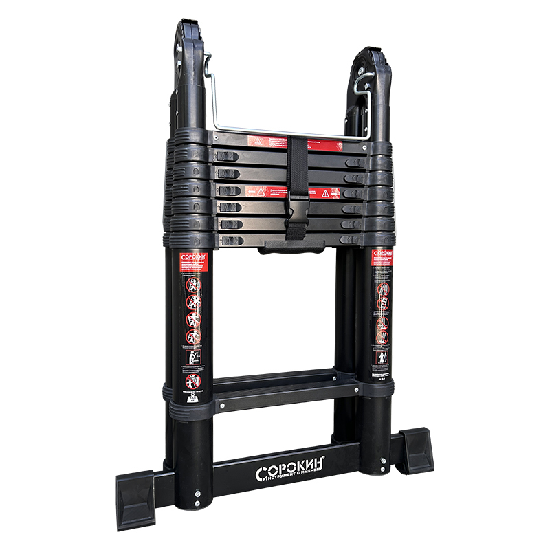Телескопическая алюминиевая шарнирная лестница – компактная и надежная.Лестница универсальна: может применяться как двусторонняя стремянка и как приставная лестница.Ее основное преимущество– выдвижная конструкция, которая в сложенном состоянии компактна и не требует много места при хранении (поместиться в шкаф, на балкон, под кровать) и при перевозке (умещается в легковой автомобиль).При небольшом весе, из-за облегченного алюминиевого каркаса, лестница способна выдерживать нагрузку до 150 кг.Соединительные механизмы обеспечивают простоту обращения, а надежные материалы – длительную эксплуатацию.Чтобы ее разложить, достаточно потянуть за верхнюю ступень вверх. Характерный щелчок означает, что уровень зафиксирован, можно вытягивать следующий.Так же быстро она и разбирается.Благодаря телескопическому выдвижению секций от перекладины к перекладине возможно применение на лестницах, уступах, неровных поверхностях без дополнительных принадлежностей. Противоскользящие двухкомпонентные опорные заглушки препятствуют скольжению по гладкому полу.Секции телескопической лестницы состоят из опорных труб и перекладин – в зависимости от необходимости, высота лестницы может быть изменена.ВАЖНО!Перед использованием обязательно проверьте правильность установки лестницы! Соблюдайте угол наклона к стене (65-75°) и обязательно используйте страховочные пояса и другие страховочные приспособления!!!ВНИМАНИЕ!На каждой ступени имеются пластиковые фиксаторы. Лестница пригодна для использования только тогда, когда все фиксаторы встанут на свои места и защелкнутся.Шарниры должны быть заблокированы перед использованием лестницы!Фиксированное положение шарнира - 30, 105 и 180 градусов!Механизмы блокировки издают характерный щелчок при использовании, но, несмотря на это, ВСЕГДА визуально проверяйте, что рычаги заблокированы.