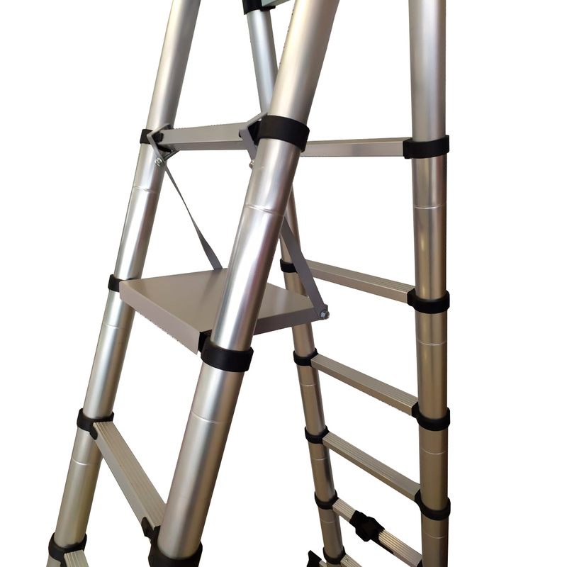 Ступень-площадка складная металлическая - изделие для личных нужд при работе в гараже, на участке, с лестницей для удобства укладки предметов на высоко расположенные поверхности. Также может использоваться при проведении строительных, малярных и других работ.Компактность хранения ступени обеспечивают малые габариты и складные опорные тяги.