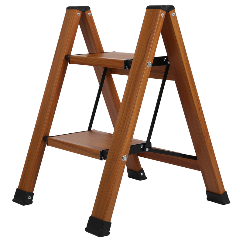 Стремянка необходима в быту и в ремонтных работах и отвечает как функциональным, так и эстетическим потребностям владельца. Весом чуть более 2,5кг Стремянка 0,5м выдерживает 150кг нагрузки. Стремянка надежная и устойчивая для безопасной эксплуатации: она обладает четырьмя пластиковыми накладками на точки опоры, предотвращающими скольжение и повреждения покрытия пола, а на ступенях предусмотрено специальное ребристое покрытие для безопасного подъема и спуска. Алюминиевая стремянка визуально напоминает деревянную благодаря качественному катафорезному пленочному покрытию, которое, помимо своего реалистичного рисунка, защищает алюминиевый каркас от повреждений и окисления. Минималистичный дизайн стремянки впишется в любой интерьер и, возможно, станет его незаменимой частью в качестве подставки под элементы декора, создавая уют в доме. В сложенном виде стремянка занимает в ширину не более 7см, что делает ее удобной для хранения дома и для транспортировки.