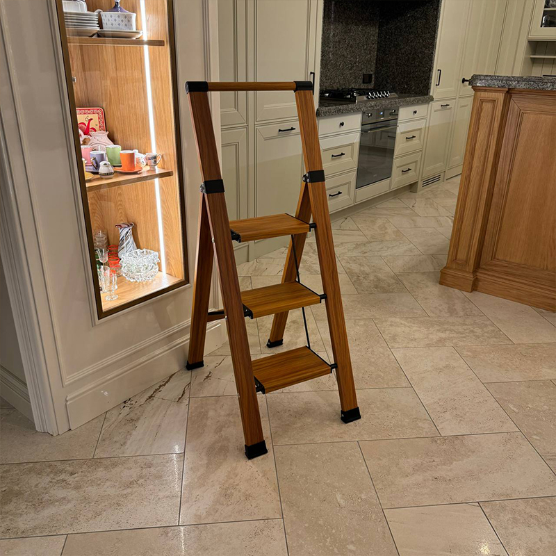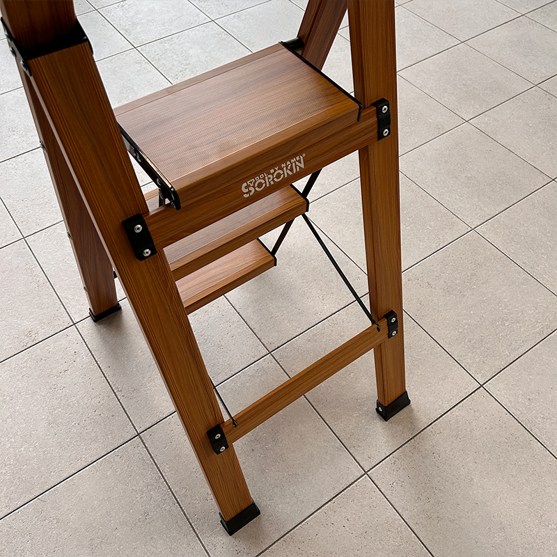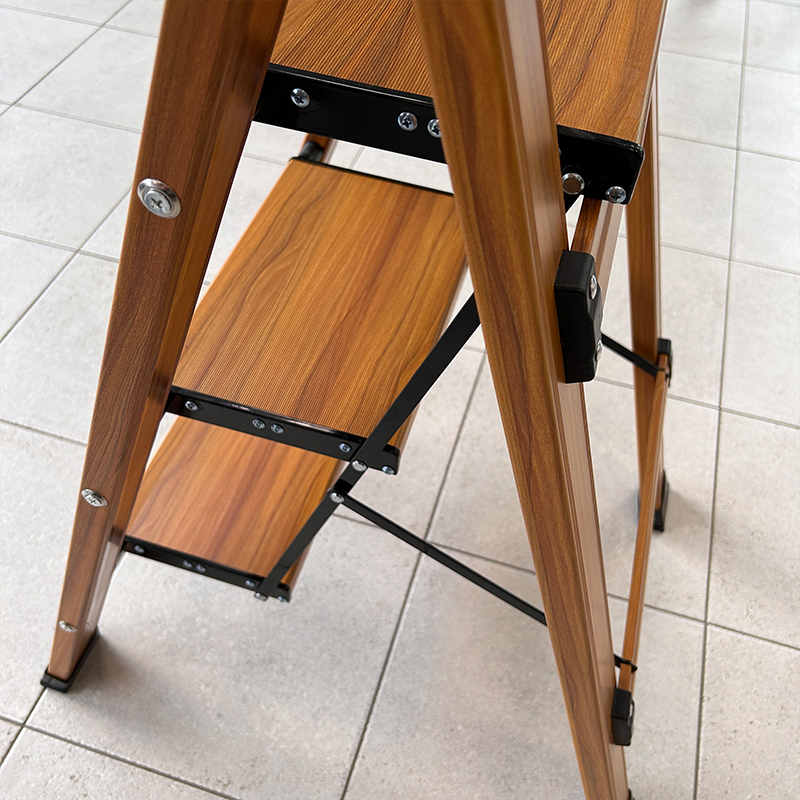 стремянка визуально напоминает деревянную благодаря качественному катафорезному