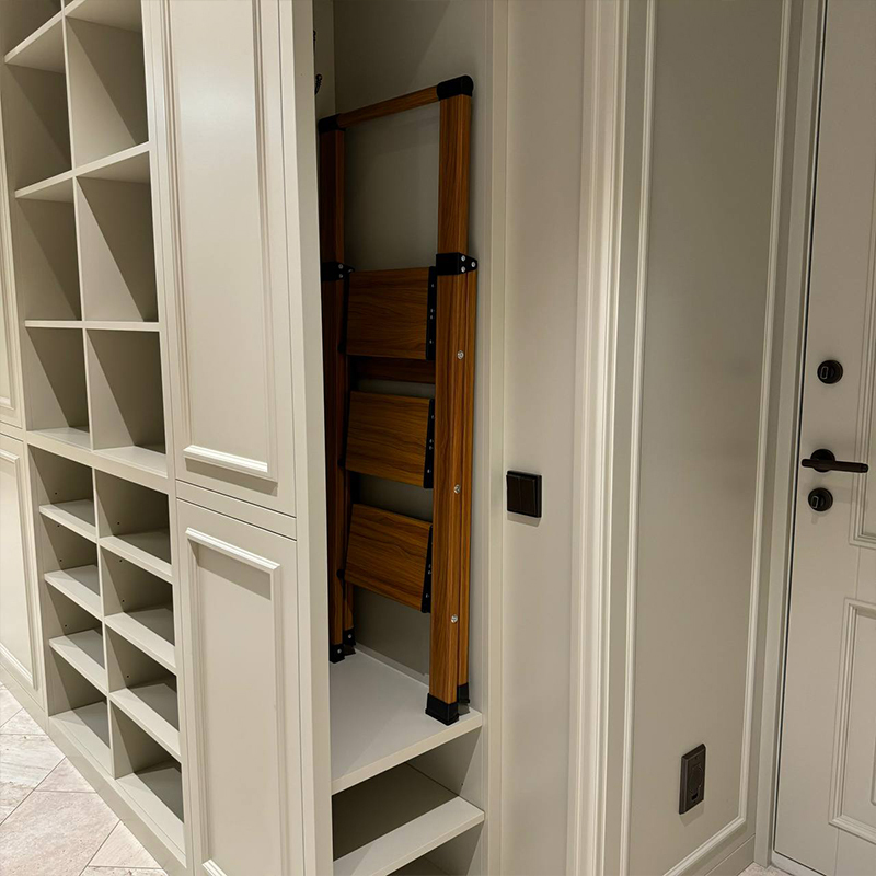 сложенном виде стремянка занимает в ширину не более 7см, что делает ее удобной