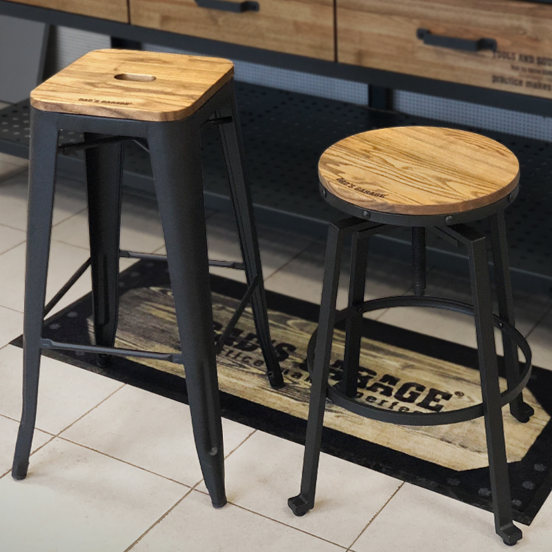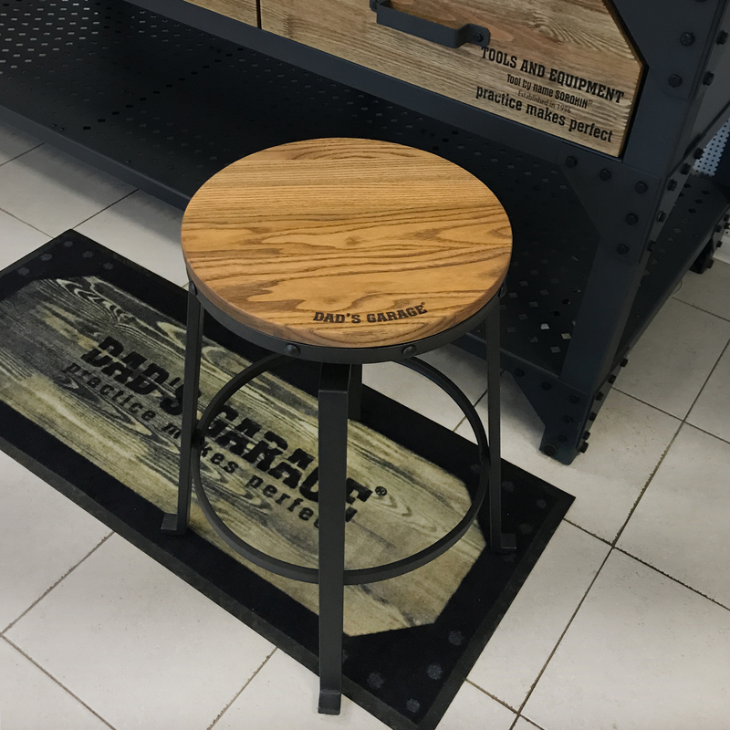Стул DAD`s Garage® предназначен для использования в офисе, на производстве и в быту, отлично впишется в интерьер в качестве барного стула. Особенно он удобен для работы за верстаком. Основные особенности конструкции: устойчивое металлическое основание с подставкой для ног; удобное сиденье с возможностью поворота на 360°; система регулировки высоты основана на надёжной механической резьбе.Качество пропитки деревянного элемента гарантирует длительное использование стула внутри помещения без повторной обработки лаком.Регулируемые опоры допускают установку стула на неровной поверхности с допуском +/- 2 см.Всесторонняя порошковая окраска металла надёжно защищает изделие от коррозии.Ретро стул серииDAD`s Garage -это практичность и дизайнерский подход, универсальный для стилей лофт, гранж и индастриал.Изделие поставляется в разобранном виде.