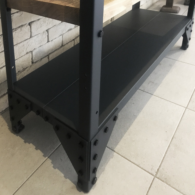 Стеллаж серии DAD`s Garage за счёт продуманной конструкции и дизайна идеально впишется в любое помещение.Стеллаж состоит из двух двусоставных металлических полок и трёх полок из массива.Основа стеллажа изготовлена из стали 3 мм.Деревянные части – массив полок - обработаны специальным маслом с последующей брашировкой.Качество пропитки деревянных элементов гарантирует длительное использование стеллажа внутри помещения без повторного нанесения масла.В конструкции предусмотрены отверстия для стяжки (сборки стеллажей в линию из двух и боллее изделий).Регулируемые опоры допускают установку стеллажа на неровной поверхности с допуском 2 см.Всесторонняя порошковая окраска металла надёжно защищает изделие от коррозии.В качестве дополнительной опции на заднюю поверхность стеллажа можно закрепить перфорированную панель с возможностью навески разнообразных держателей для инструмента. В случае необходимости можно установить вторую панель таким образом, что вся задняя поверхность стеллажа будет перфорированной стеной.Стеллажи, шкафы и верстаки серии DAD`s Garage создают неповторимую атмосферу сочетания ретро и современного дизайна Вашего гаража. Тщательно продуманные элементы конструкции гарантируют функциональность изделий - болты, дополнительные угловые элементы несут как эстетическую, так и практическую нагрузку. DAD`s Garage - это практичность и дизайнерский подход, универсальный для стилей лофт, гранж и индастриал.Оригинальное решение с металлическими накладками не только задаёт стилистику брутальности, но и обеспечивает дополнительную жёсткость изделий, устойчивость и способность выдерживать значительный вес.Стеллаж поставляется в разобранном виде. Инструкция по сборке входит в комплект поставки.По желанию клиента стеллаж может быть поставлен в собранном виде, либо сборка может быть произведена по месту доставки.Стоимость дополнительных услуг можно уточнить по бесплатному телефону 8 (800) 333-40-40 доб.781 "Сервисная служба"