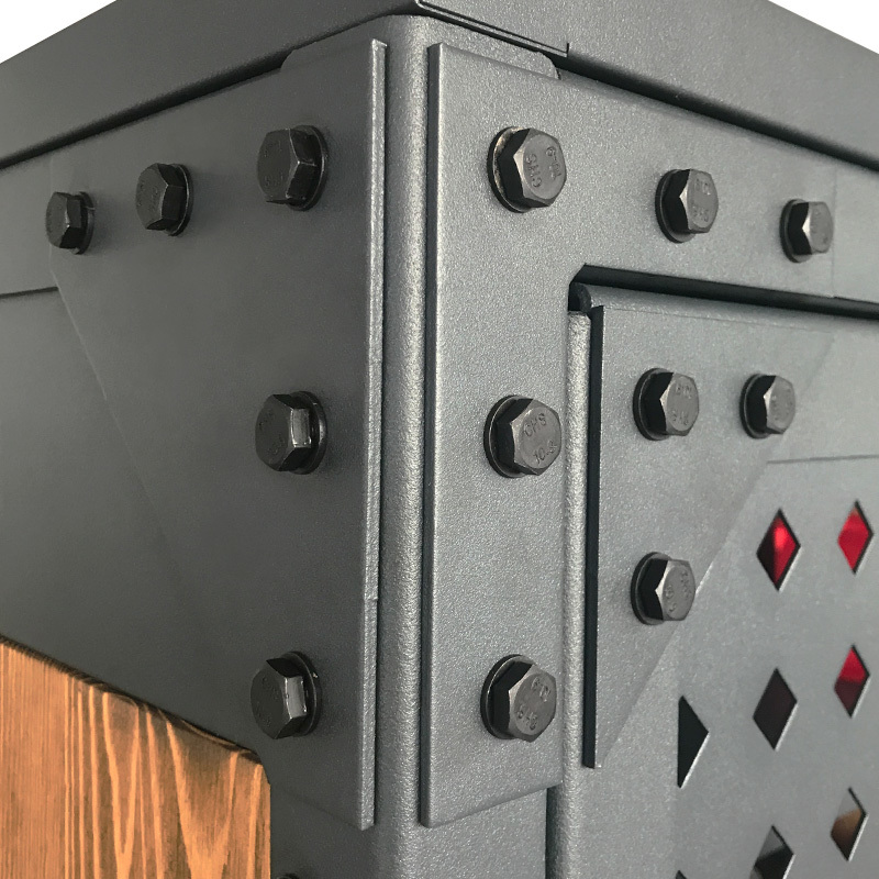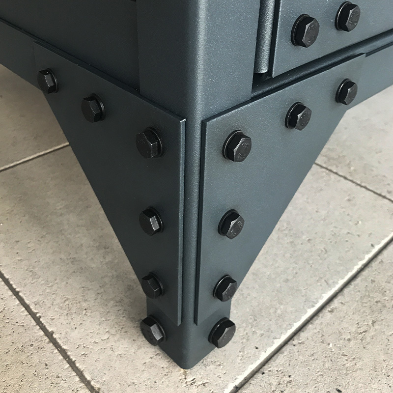 Оригинальное решение с металлическими накладками не только задаёт стилистику брутальности, но и обеспечивает дополнительную жёсткость изделий, устойчивость и способность выдерживать значительный вес.