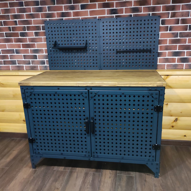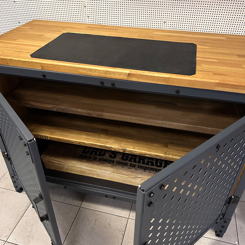 Тумба серии DAD`s Garageс длиной 1420 и глубиной 655 мм является воплощением надёжности и вместительности.Основа тумбы изготовлена из стали 3 мм.Деревянные части – массив боковых панелей, полок и столешницы - обработаны специальным маслом с последующей брашировкой.Качество пропитки деревянных элементов гарантирует длительное использование тумбы внутри помещения без повторного нанесения масла.Оригинальная перфорацияв основе конструкции дверей подчёркивает индивидуальный стиль изделия и позволяет создать уникальную конфигурацию внутреннего пространства.Внутри тумбы DAD`s Garage находятся две мощные деревянные полки из массива толщиной 4см. Полки могут быть установлены на разной высоте. Расчётная нагрузка на полку – 75 кг.Регулируемые опоры допускают установку тумбы на неровной поверхности с допуском +/- 3 см.Всесторонняя порошковая окраска металла надёжно защищает изделие от коррозии.Тумбы, шкафы и верстаки серии DAD`s Garageсоздают неповторимую атмосферу сочетания «ретро» и современного дизайна Вашего гаража. Тщательно продуманные элементы конструкции гарантируют функциональность изделий - болты, дополнительные угловые элементы несут как эстетическую, так и практическую нагрузку.DAD`s Garage -это практичность и дизайнерский подход, универсальный для стилей «лофт», «гранж» и «индастриал».Оригинальное решение с металлическими накладками не только задаёт стилистику брутальности, но и обеспечивает дополнительную жёсткость изделий, устойчивость и способность выдерживать значительный вес.Тумба поставляется в разобранном виде. Инструкция по сборке входит в комплект поставки.По желанию клиента тумба может быть поставлена в собранном виде, либо сборка может быть произведена по месту доставки.Стоимость дополнительных услуг можно уточнить по бесплатному телефону 8 (800) 333-40-40 доб.781 "Сервисная служба"