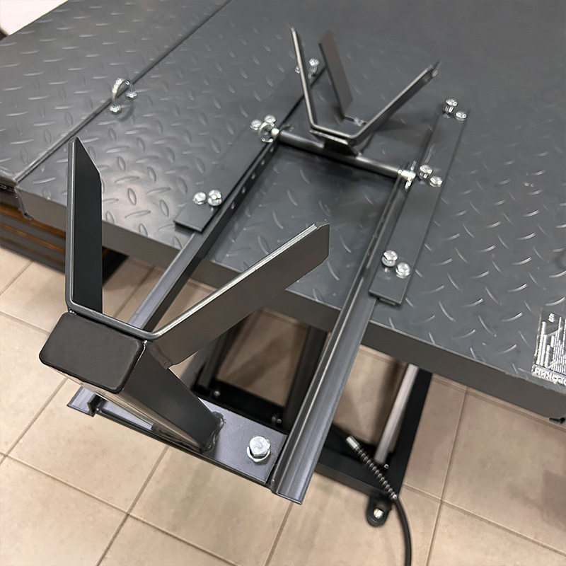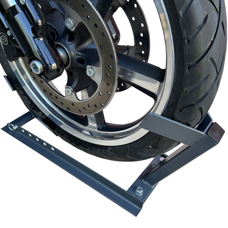 Фиксатор переднего колеса "мотоловушка» является незаменимым устройством для надёжной фиксации мотоцикла при его размещении на платформенном мотоподъёмнике или в автомобильном прицепе, кузове и фургоне.Он оснащён передним упором и перекидным фиксатором, имеющим регулировку по размеру, что позволяет хранить или транспортировать мотоцикл с разными размерами колёс.Рама фиксатора имеет возможность крепления на платформу мотоподъёмника и пол прицепа или автотранспорта. Окраска порошковой эмалью придаёт изделию повышенную механическую стойкость. Подходит для любого мотоцикла весом до 500 кг.