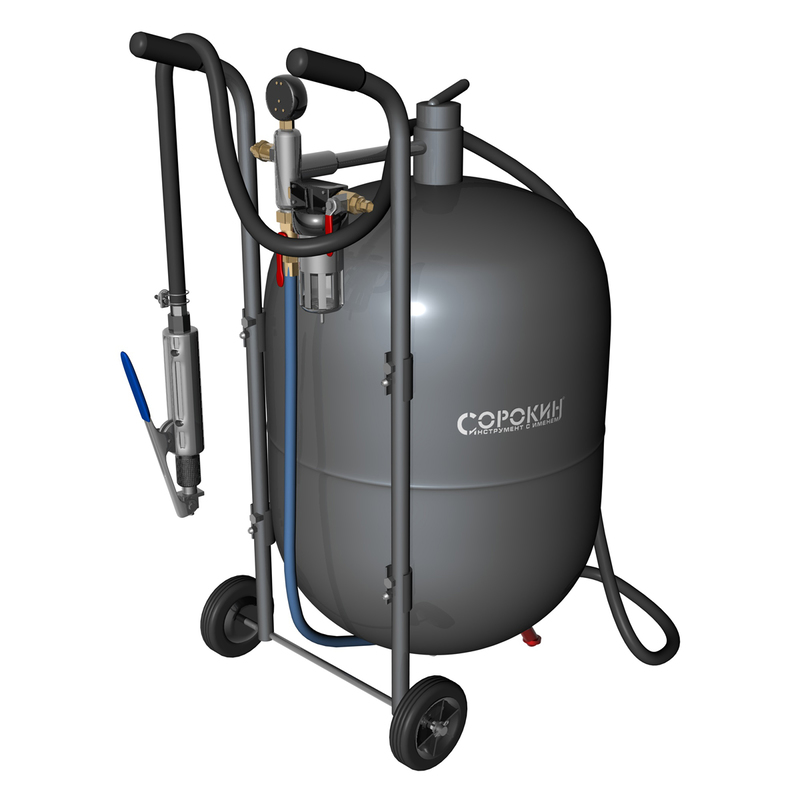 Пескоструйные аппараты предназначены для очистки воздушно-пескоструйным способом внутренних и наружных поверхностей от старой краски, ржавчины, окалины, различного рода загрязнений, а также для подготовки деталей под покраску при ремонтных работах на энергетических, судоремонтных, автомобильных сервисах и других ремонтных и производственных предприятиях. В комплект входит пистолет с комплектом форсунок, шланг, воронка для загрузки абразива и маска. Для подключения потребуется