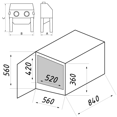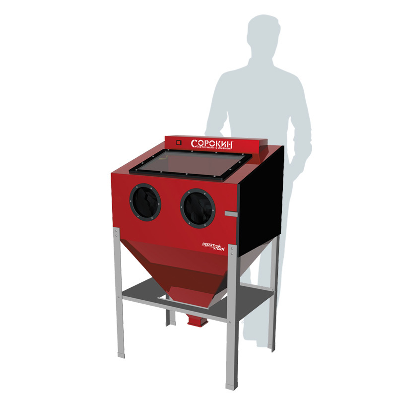 Пескоструйная камера 10.8 является цельнометаллической сварной конструкцией. Устойчива в работе за счёт жёсткого сочленения камеры и опор. Качественное уплотнение обеспечивает герметичность камеры в области двери фронтальной загрузки.