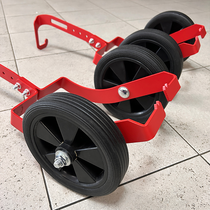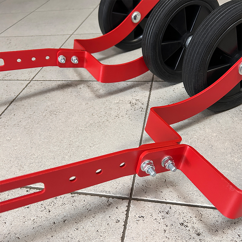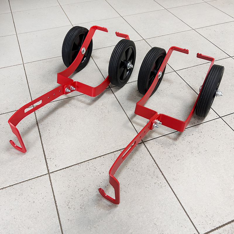 Тележки под лыжи для транспортировки снегохода позволяют легко перемещать его по ровному полу магазина, гаража или сервиса. Комплект состоит из двух платформ, имеющих регулировку по ширине лыжи от 180 до 270 мм, что позволяет их использовать для всех моделей снегоходной техники. Каждая платформа снабжена двумя прорезиненными колесами, диаметром 200 мм, максимальная нагрузка на две платформы до 0,7т. Тележки изготовлены из листового металла толщиной 5мм и окрашены порошковой краской. Купить тележки для перемещения снегохода вы можете, позвонив по бесплатному телефону 8 (800) 333-40-40 или оформив заявку на сайте, а также в фирменных магазинах ТД СОРОКИН®.