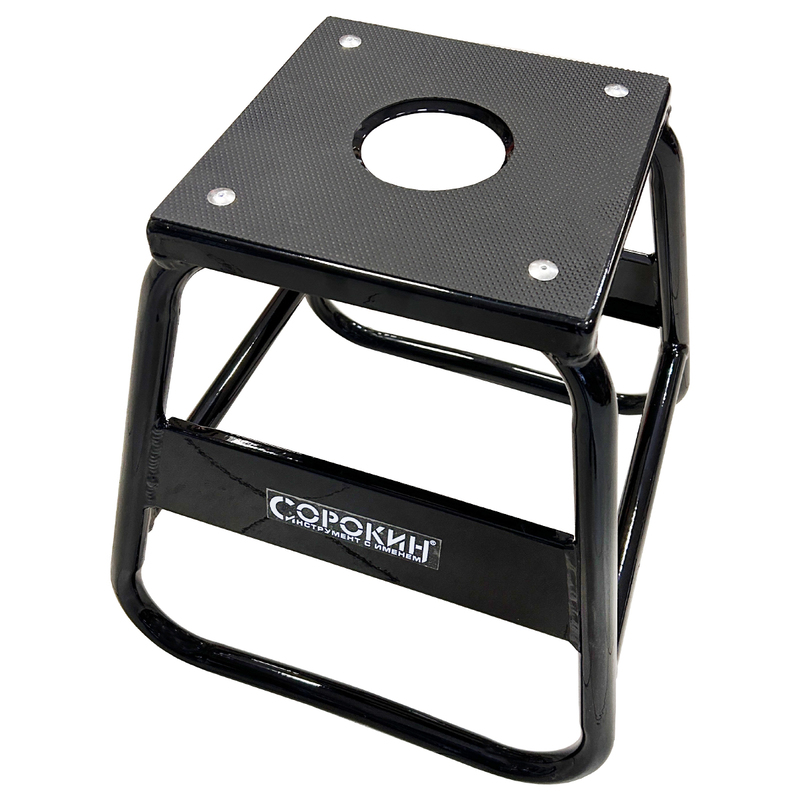 Мотоподставка предназначена для вывешивания мотоцикла или иной какой-либо части с целью проведения технического обслуживания, ремонта или хранения. Особенностью данной подставки является: Удобство использования, не требующее большой физической силы; Конструкция мотоподставки оптимизирована для выполнения различных работ с мотоциклами; Удобство вывешивания при зимнем хранении.