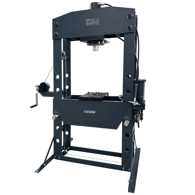 Пневмогидравлический пресс 7.100 предназначен для эксплуатации на станциях технического обслуживания, в производственных цехах и гаражных мастерских при ремонтно-монтажных работах и обслуживании различных видов легковой и грузовой техники.Н-образное основание гарантирует устойчивость в процессе эксплуатации. Качественная порошковая окраска предотвращает процесс коррозии и обеспечивает длительный срок службы.Для облегчения работы с прессом в конструкцию данного пресса добавлены: барабанная лебедка для изменения высоты станины и ручной пневмоклапан для подключения к компрессору.Для безопасного использования на пресс возможно установить защитный экран.