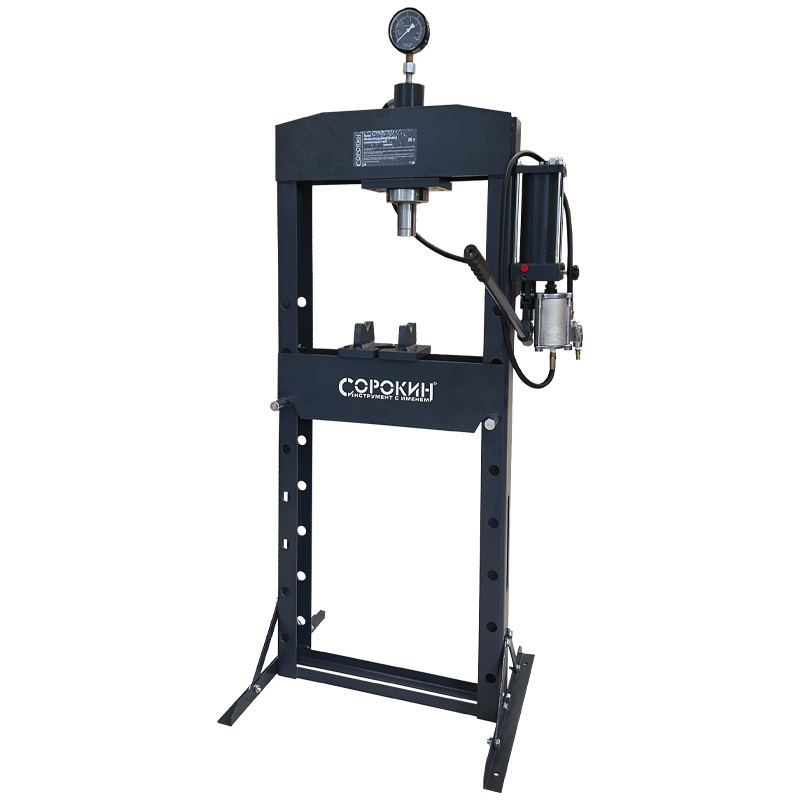 Пневмогидравлический пресс 7.20 предназначен для эксплуатации на станциях технического обслуживания, в производственных цехах и гаражных мастерских при ремонтно-монтажных работах и обслуживании различных видов авто и мототехники, в том числе - с использованием дополнительных насадок и специального инструмента.Для облегчения работы в конструкцию данного пресса добавлен ручной пневмоклапан.Опорные плиты на станине пресса оснащены подвижными шплинтами, позволяющими удерживать плиту на станине; а сами плиты имеют специальные выемки для работы с трубами.Н-образное основание гарантирует устойчивость в процессе эксплуатации. Качественная порошковая окраска предотвращает процесс коррозии и обеспечивает длительный срок службы.Для безопасного использования пресс рекомендуется доукомплектовать защитным экраном.