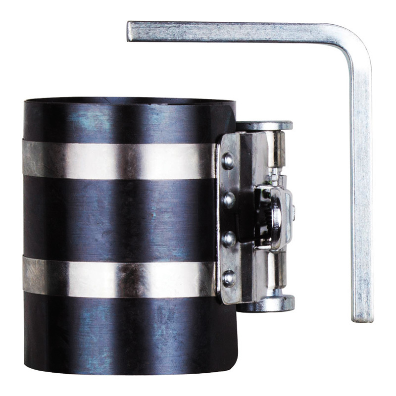 Оправка для сжатия поршневых колец на поршне. Оправка облегчает установку поршней в цилиндры.Самоблокирующаяся собачка храпового механизма предотвращает преждевременное высвобождение и обеспечивает принудительную блокировку.Высота 3 дюймаДиаметр поршня от 2-1 / 8 дюйма до 5 дюймов (53-125 мм).