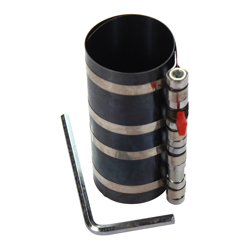 Оправка для сжатия поршневых колец на поршне. Оправка облегчает установку поршней в цилиндры.Самоблокирующаяся собачка храпового механизма предотвращает преждевременное высвобождение и обеспечивает принудительную блокировку.Высота 6 дюймаДиаметр поршня от 3-1 / 8 дюйма до 7 дюймов (90-175 мм).