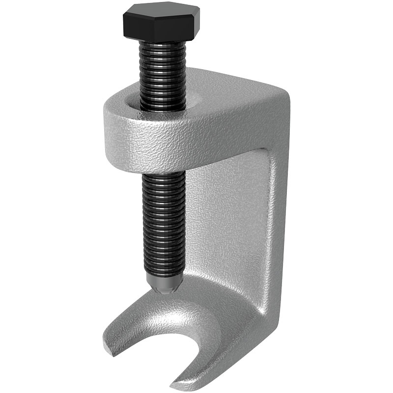 Универсальный съёмник шаровых опор предназначен для выдавливания цапфы шарового шарнира из рычага поворотного кулака. Компактная конструкция позволяет работать в труднодоступных местах. Размер зёва 19 мм.