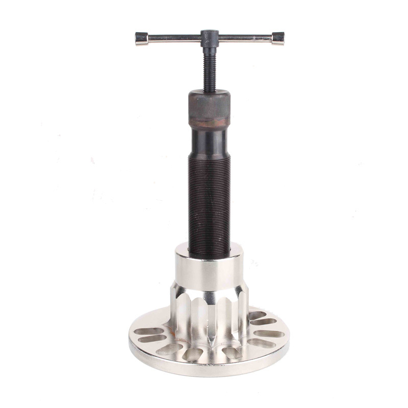 Универсальный гидравлический съемник. Применяется для демонтажа валов и ступиц колес автомобиля.12-тонный гидравлический цилиндрУстанавливается на ступицы с 4 и 5 отверстиямиДиаметр окружности отверстия от 98 до 125 ммДля внедорожников и легких грузовиковШпиндель можно поворачивать вручную или с помощью храповикаМатериал: Сталь
