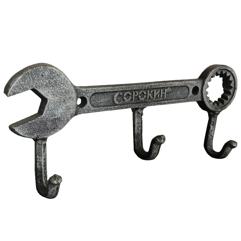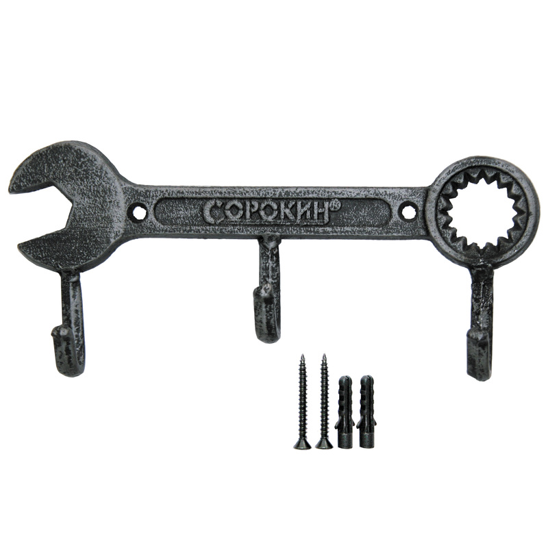 Стильная, прочная, удобная вешалка в гаражной тематике. Подойдет для хранения одежды дома и в гараже. Вешалка изготовлена из чугуна. Имеет серебристо-черное защитное покрытие.Комплект поставки: вешалка - 1 шт.; пластиковый дюбель 6х30 - 2 шт.; шуруп 4х40 - 2 шт.