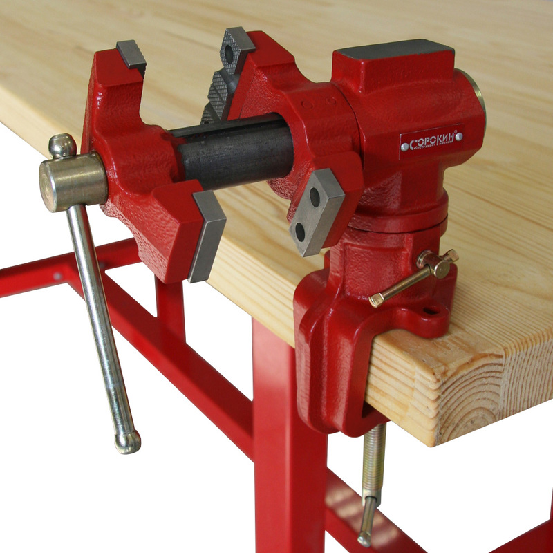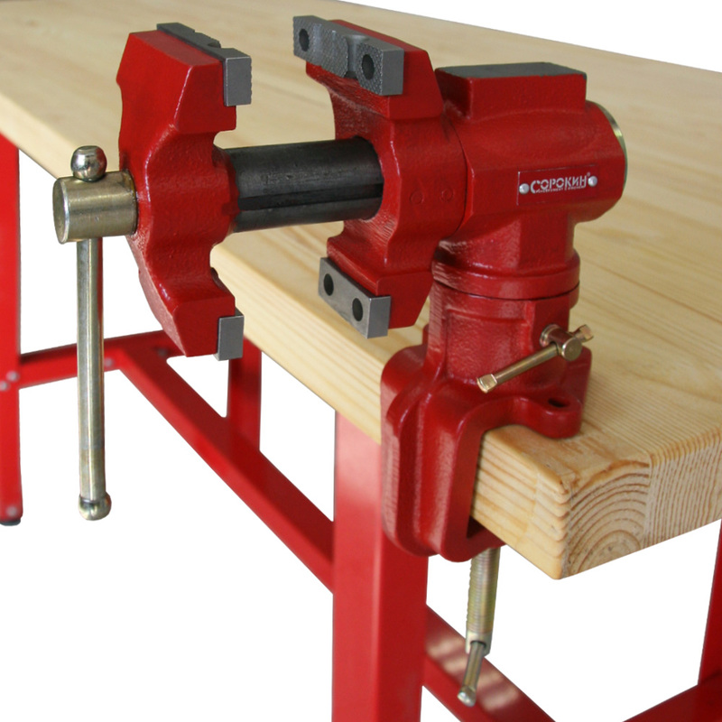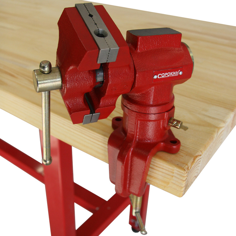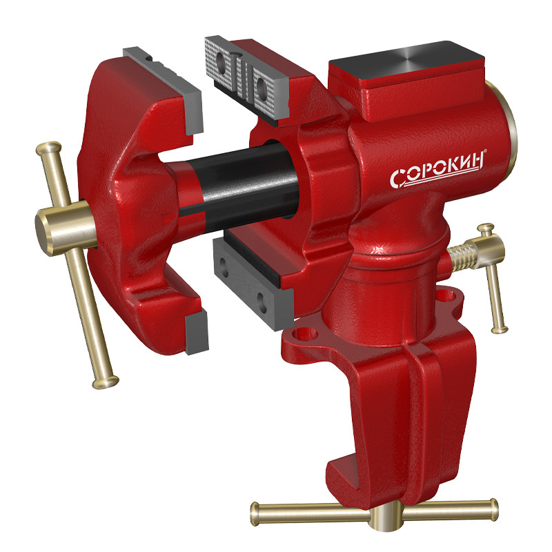 Тиски многофункциональные (слесарные, поворотные, настольные) изготовлены из ковкого чугуна, оборудованы вспомогательными зажимами для работы с изделиями нестандартной формы.Удобство использования обеспечивается вращением в двух плоскостях: основание и зажимной рабочий блок поворачиваются на 360 градусов, что гарантирует максимальную функциональность приспособления.Благодаря чугунному корпусу модель отличается устойчивостью к высоким нагрузкам.Съёмные губки легко демонтируются и заменяются в случае износа.Прямоугольная наковальня предназначена для проведения мелких ударных работ.Крепление к рабочей поверхности осуществляется с помощью болтов через три отверстия или с помощью струбцины.Устанавливаются на верстакили другую производственную мебель.Материал воротков имеет гальваническое покрытие, что обеспечивает длительный срок службы.Порошковая окраска надежно защищает изделие от коррозии.