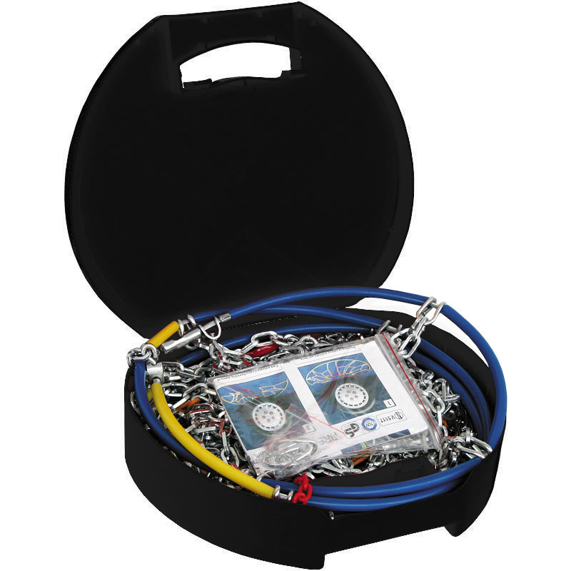 Цепи противоскольжения устанавливаются на шины автомобиля для обеспечения большей устойчивости при движении на льду, на рыхлых и неустойчивых грунтах и заснеженных зимних дорогах, и позволяют преодолеть даже самые труднопроходимые участки. Для изготовления цепей противоскольжения используется высокопрочная закалённая сталь, что гарантирует надежность и долговечность изделия. Конструкция цепи позволяет производить установку цепи на колесо без перемещения транспортного средства. Цепи с шагом 12 мм, возможно использовать на легковых автомобилях. ?Комплект из двух цепей, поставляется в удобном пластиковом кейсе.