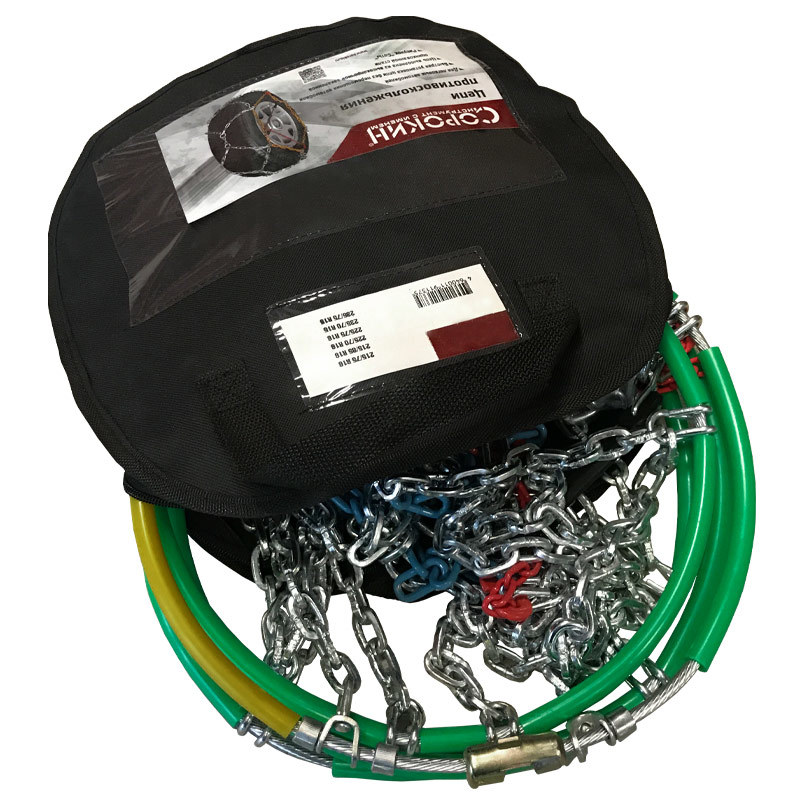 Цепи противоскольжения устанавливаются на шины автомобиля для обеспечения большей устойчивости при движении на льду, на рыхлых и неустойчивых грунтах и заснеженных зимних дорогах, и позволяют преодолеть даже самые труднопроходимые участки. Для изготовления цепей противоскольжения используется высокопрочная закалённая сталь, что гарантирует надежность и долговечность изделия. Конструкция цепи позволяет производить установку цепи на колесо без перемещения транспортного средства. Цепи с шагом 16 мм, возможно использовать на полноприводных автомобилях.Комплект из двух цепей, поставляется в удобной сумке.