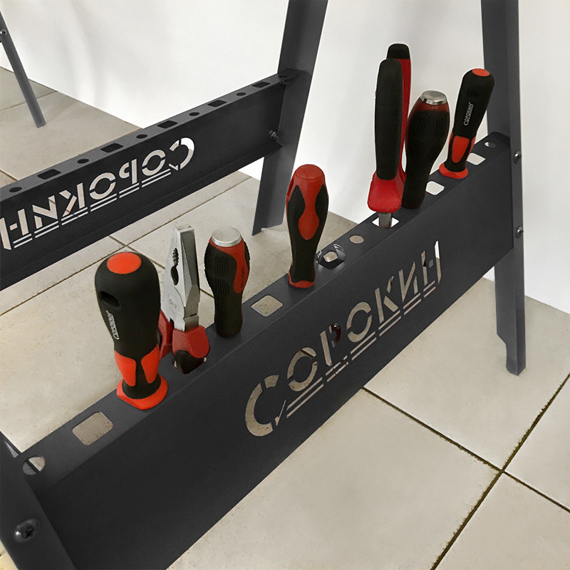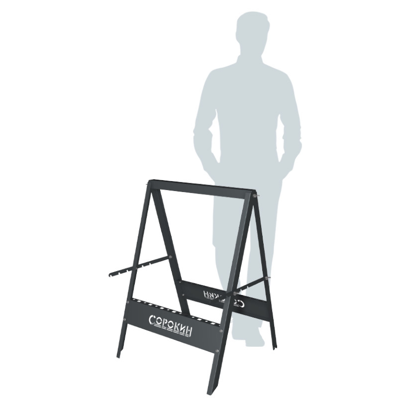 Металлические складные козлы предназначены для организации эргономичной рабочей поверхности при размещении, нанесении разметки, распиле и обработке различных строительных материалов. Специальные отверстия в верхней балке позволят надёжно зафиксировать настил рабочей поверхности, или закрепить сверху небольшой деревянный брусок/резиновый коврик. Монтажные отверстия в регулировочной рейке позволят задать необходимую высоту поверхности для удобной работы.Металлические складные козлы(подстолье) изготовлены из листовой стали и покрыты порошковой краской для защиты от коррозии.В сложенном состоянии подстолье легко транспортируется и удобно хранится благодаря компактным размерам.Нижняя перемычка опор предназначена для придания жёсткости конструкции и имеет дополнительные ниши для хранения используемого при работе инструмента, такого как отвёртки, ножи, стамески и всякие приспособления для фиксации материалов. Для эффективной работы с крупным погонным материалом рекомендуется использовать три и более изделий.