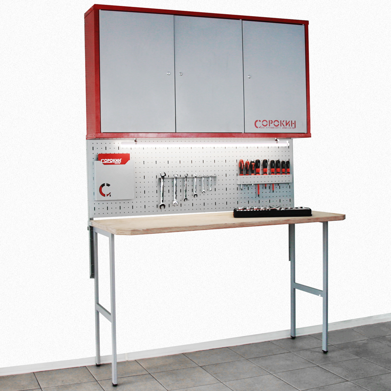 Стол откидной представляет собой облегченную конструкцию компактного рабочего места, при этом сохраняет весь функционал полноценного гаражного верстака. Особенностью складного рабочего стола является возможность размещения его в ограниченном пространстве мастерской, гаража, сарая и т.д. Рабочий стол-верстак поместится в проходном коридоре, подсобке, на стене - практически в любом малогабаритном помещении. Дополнительно на стол-верстак можно установить полку , всевозможные держатели инструмента , на перфорацию удобно крепятся магнитные держатели . Также с рабочим столом отлично сочетается навесная полка . Верстак изготовлен из стали и окрашен порошковой эмалью. Столешница изготовлена из влагостойкой фанеры и покрыта лаком. В комплект поставки верстака входят: - универсальные стойки-опоры; - столешница из фанеры 27 мм; - перфорированная панель; - комплект кронштейнов и метизов для монтажа. Купить складной верстак вы можете, позвонив по бесплатному телефону 8 800 333 40 40 или оформив заявку на сайте, а также в фирменных магазинах ТД СОРОКИН®.