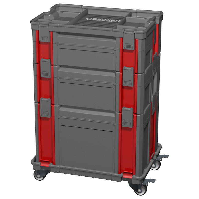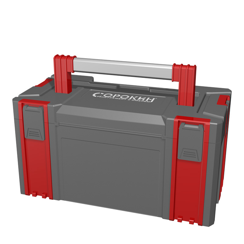 Ящик для инструментов с алюминиевой ручкой. Ящик предназначен для хранения и переноски инструмента и сопутствующих предметов. Ящик входит в модульную систему и может использоваться в составе комплектов и комбинаций с любым из представленных ниже предметов: 27.41 , 27.43 , 27.45 , 27.48 , 27.49 Материал корпуса: ABS Ручка: алюминий + ABS Замок: ABS