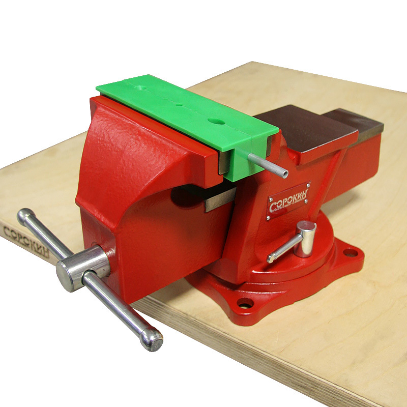 Тиски предназначены для быстрой и надежной фиксации обрабатываемого предмета, оснащены поворотным основанием и наковальней, что расширяет диапазон производимых работ. Устанавливаются на верстак или другую производственную мебель, предусмотренную для крепления тисков. Так же есть возможность приобрести Пластиковые накладки. Они позволят надёжно зафиксировать мягкие, легко деформируемые материалы, без риска их повреждения. Купить тиски вы можете, позвонив по бесплатному телефону 8 (800) 333-40-40 или оформив заявку на сайте, а также в фирменных магазинах ТД СОРОКИН®.